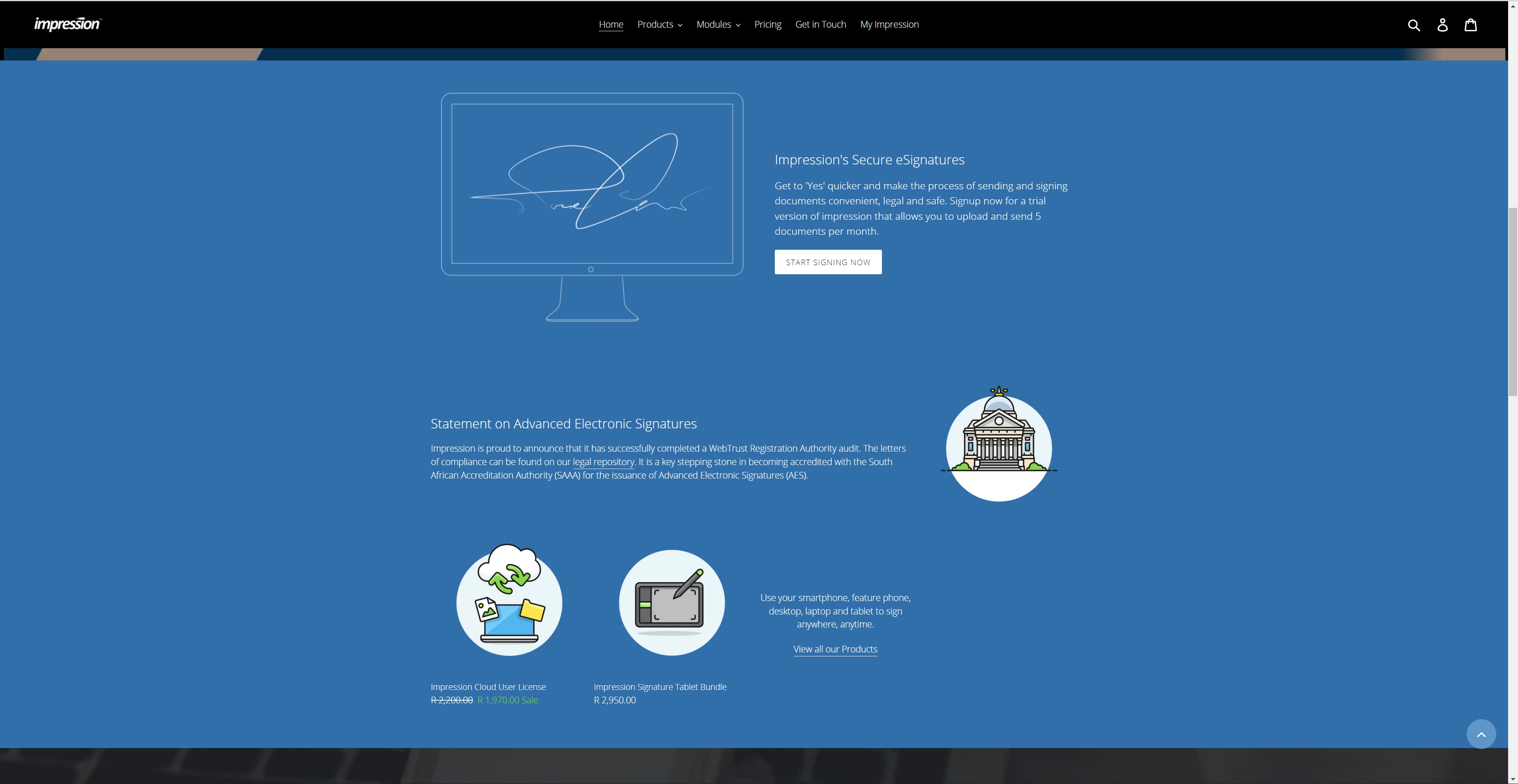 This is the website and online store for the impression signing solution. I developed this on shopify.